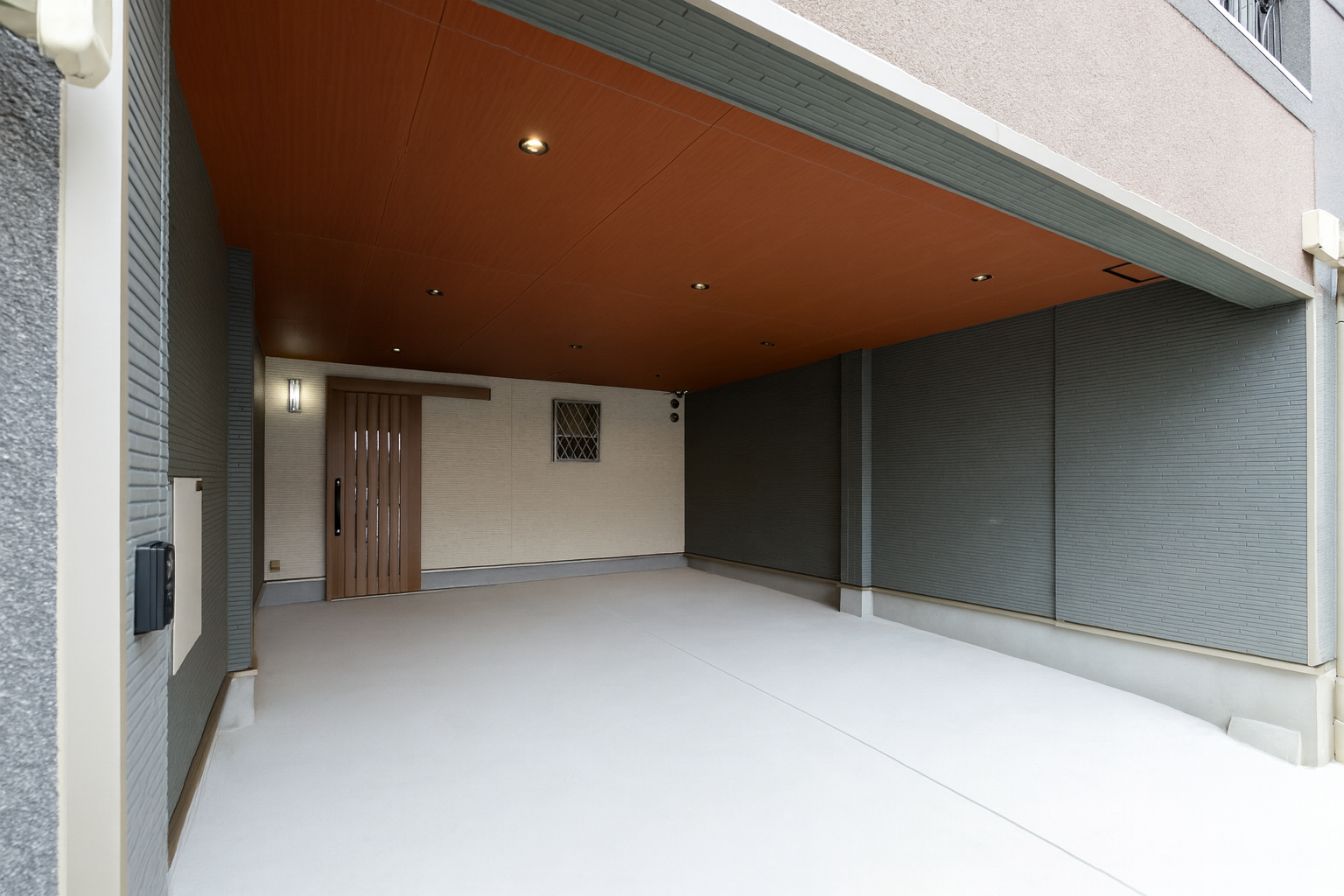 ガレージは車1台分のスペースから2台分のスペースを確保するとともに、玄関周りの動線を整理しました。